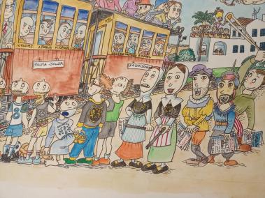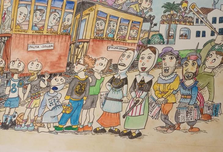 Les Valentes Dones i la resta de personatges del Firó, Sant Ramon de Penyafort o la Torre Picada, el tramvia o sa Cuca de sa Mola són algunes de les imatges que l’artista catalana, Pilarín Bayés, ha il·lustrat en un mural que lluirà a la font del parc de sa Calatrava. L’obra mostra racons emblemàtics de Sóller i el Port i personatges que formen part de la història del municipi. La pintura inclou diferents moments i paisatges que el resident pot reconèixer fàcilment, però també té en compte entitats culturals; socials o clubs esportius locals. Aquesta setmana, la pintura original ha arribat a les Cases de la Vila davant la sorpresa de regidors i regidores que han contemplat l’obra d’art en paper. Aquesta també s’emmarcarà i es penjarà a l’Ajuntament. Posteriorment, la il·lustració de grans dimensions es col·locarà en rajoles sobre la pedra del parc municipal del Camp de s’Oca, la qual es podrà contemplar aviat. El projecte «100 murals en 100 pobles» es començà a gestar durant la passada legislatura, però gràcies a una partida reservada des del departament de Cultura en els romanents s’ha pogut materialitzar la proposta que compta amb un pressupost de 18.000 euros.