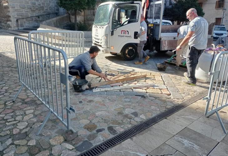 Els operaris han començat a avui a fer proves al paviment de Plaça. L'Ajuntament aprovà una partida de 48.300 euros que es destinaran a renovar l'empedrat de davant la Parròquia, el qual s'ha deteriorat amb el pas del temps i el pes dels vehicles. D'aquesta manera, avui els operaris feien proves en un dels quadrats del paviment col·locant les primeres pedres i així comprovar si són aptes per embellir el trespol. La confirmació final serà per part dels tècnics municipals i el departament de Patrimoni, que gestiona el regidor Juan A. Lorente.