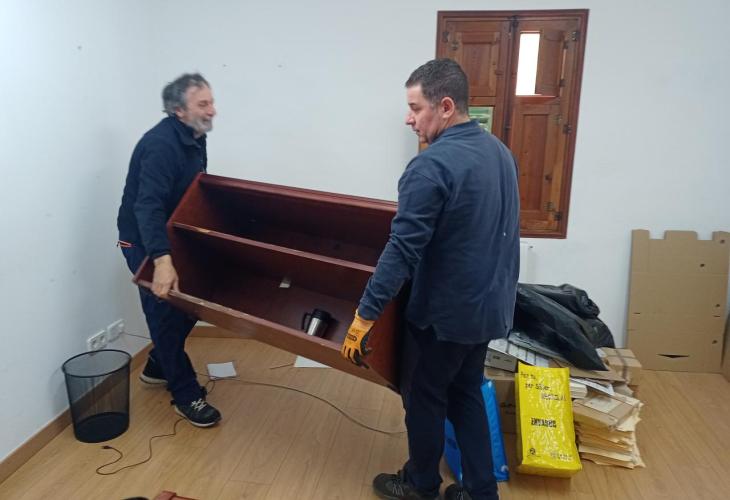 El trasllat de les oficines del jutjat de Pau cap a l'estació del Tren ha començat avui. Els operaris de la brigada carreguen el mobiliari i la documentació des de les dependències de l'Hospici cap a la nova seu, situada a la segona planta de l'estació del Ferrocarril. La mudança finalitzarà dijous, data prevista que les oficines estiguin de nou operatives al públic.