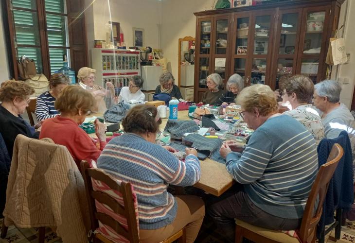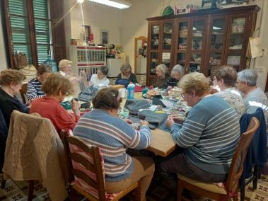 Un altre grup que també es reuneix els dimecres a l’Hospici, són les cosidores de l’Estol de Tramuntana. Aquesta associació de ball tradicional confecciona tot l’any de manera voluntària peces «d’indumentària tradicional amb la finalitat que la gent vagi ben vestida», comenten. Tot allò que fan ho venen per mantenir l’associació de ball, tot i que «moltes coses que ja hem cosit es venen durant tot l’any per la gran demanda». L’agrupació es dedica sobretot a crear peces d’estil rústic tot i que «darrerament reproduïm peces antigues que estan en mal estat que lluïm quan feim alguna mostra d’indumentària».