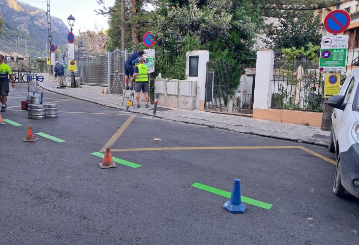 L'Ajuntament continua creant places d'aparcament per als residents del municipi. Avui dimarts s'han iniciat les tasques a la plaça d'Espanya de Sóller. Les 12 places de la zona són durant aquests moments reconvertides per tal que a partir d'ara tan sols puguin ser aprofitades pels residents, en una zona tan cèntrica com ho és aquesta. A més, també es podrà emprar una zona de càrrega i descàrrega per als comercials tan sols entre les 8 i les 11 hores del matí. Així doncs, els operaris de la Vila han delimitat les noves places ZAR, que cal recordar són les de color verd. L'eliminació de places d'ORA, les blaves, és compensada amb la creació dels nous aparcaments de Desviament, preparant ja així la Zona de Baixes Emissions, amb la qual tan sols circularan pel centre els residents.