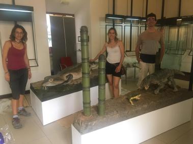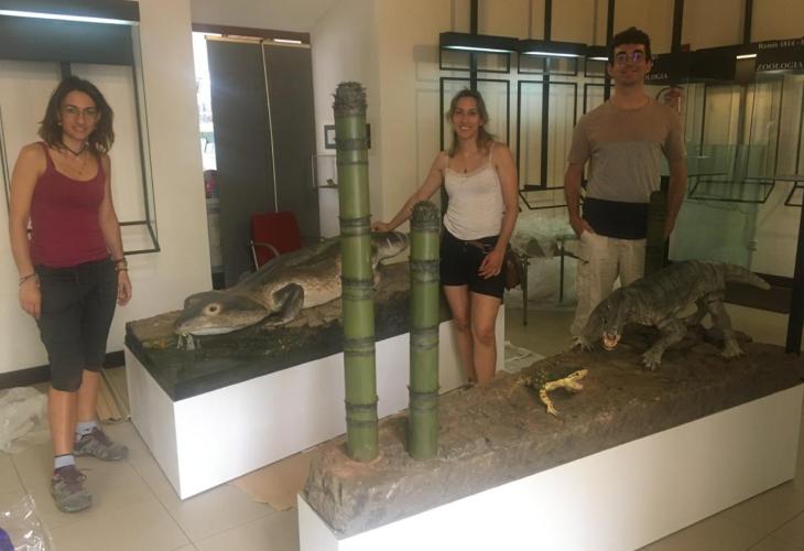 Les rèpliques, que inclouen el Tramuntanasaurus tiai, espècie de mida petita recentment descrita, i la d’un avantpassat dels mamífers encara en estudi, han estat construïdes per l’empresa especialitzada catalana Icra Art, amb base als fòssils trobats i estudiats per Matamales i els seus col·laboradors. També es podrà veure com era en vida un ‘captorrínid’ de gairebé dos metres de llarg conegut per una mandíbula trobada casualment fa anys també en una cala de la Serra. Els diorames també inclouen una reconstrucció de l’ambient d’aquell període, consistent en planes anegades amb una vegetació formada per equisets o ‘cues de cavall’ i zones fangoses on també quedaren enregistrades les icnites (petjades fòssils) d’aquests éssers, així com una bona varietat d’invertebrats.