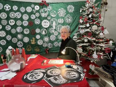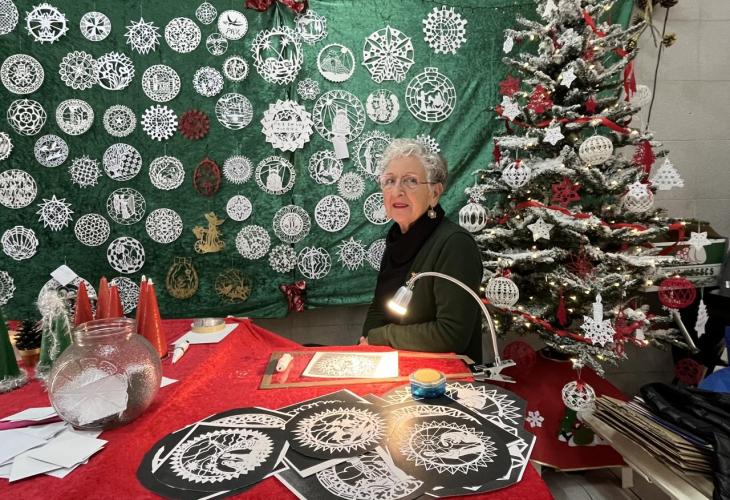 - Sí, cada dia me’n comanen. Moltes d’elles no les puc fer aquí al Mercat, les he de fer a casa amb tranquil·litat. Les petites les faig amb paper i les grans amb cartolina. Les que estan fetes amb cartolina són més difícils de tallar, necessites un ganivet, però són més dures. Abans s’usava el paper de barba, però ara ja no. El que més em demanen enguany és l’església de Sóller.