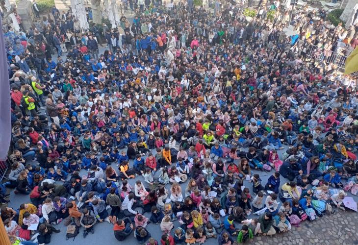 Alumnes de tots els centres educatius s'han unit avui matí per celebrar la Pau al món. En una plaça plena fins alt els infants de Sóller han clamat tots junts per la no-violència al món amb pancartes amb missatges recordant aquest dia que celebra arreu del planeta. La celebració s'ha realitzat a les 12 hores i alguns estudiants de cada centre ha llegit un manifest reivindicant un món millor. Després, s'han penjat unes pancartes que han quedat instal·lades a la balconada de l'Ajuntament de Sóller.
