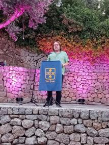 I, finalment, l’activitat de veres arribà ahir vespre. Com ja s’ha dit, fou el pregó de Vibot el primer acte important. L’estudiós de patrimoni material i immaterial de Mallorca va fer, per una banda, una reivindicació a la importància que té la socialització en un poble petit com Deià, per «retrobar-nos com a persones físiques i no virtuals», digué Vibot; seguidament, parlà de la seva experiència amb Deià i el que ha representat per a ell tant en l’àmbit professional com particular. Un amfiteatre ple de gent escoltà atentament les seves paraules.